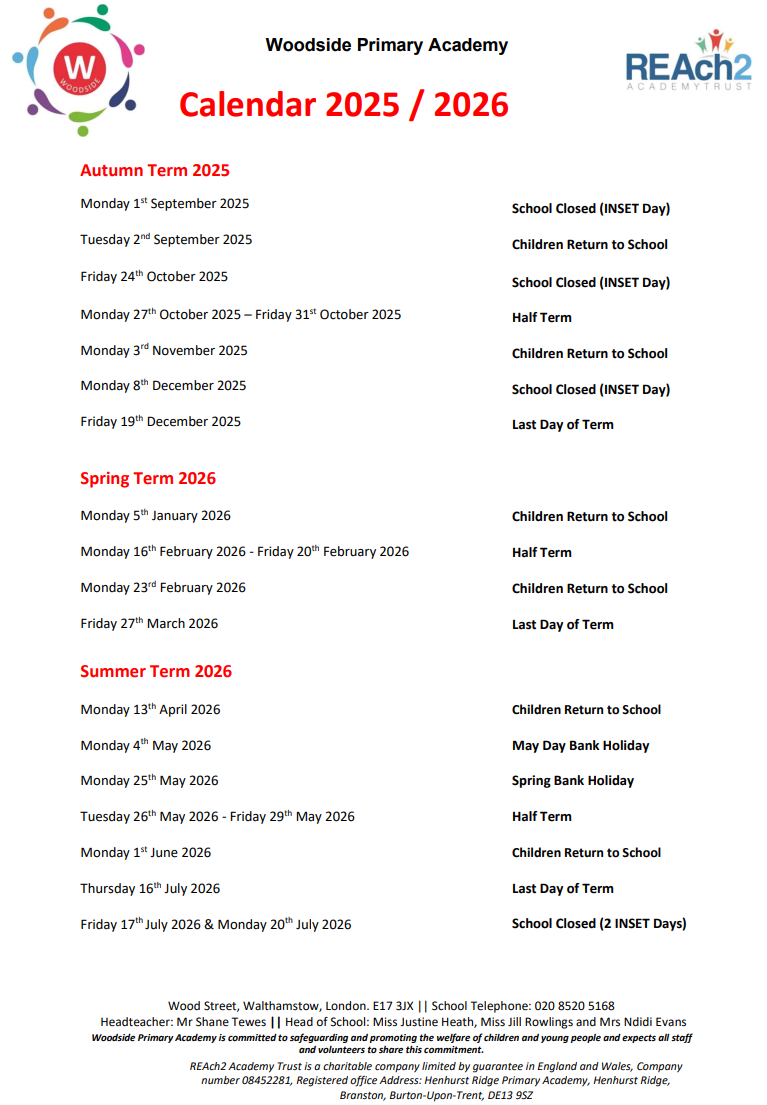 Woodside Primary Academy - Calendar 2025/ 2026